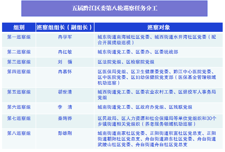 据悉,本轮将对3个街道、8个区级部门单位党组织开展常规巡察,对养老服务和医保基金管理两个领域开展机动巡察,对部分街道涉及城中村改造任务的6个社区开展直接巡察,对所巡街道下辖的其他24个村(社区)开展“乡村一体巡”,巡察期间同步开展落实意识形态工作责任制、统战工作责任制情况专项检查,并与专项整治、政治督察、审计等联动开展监督。同时,还将配合市委巡视组对2个社区党组织开展提级巡视。