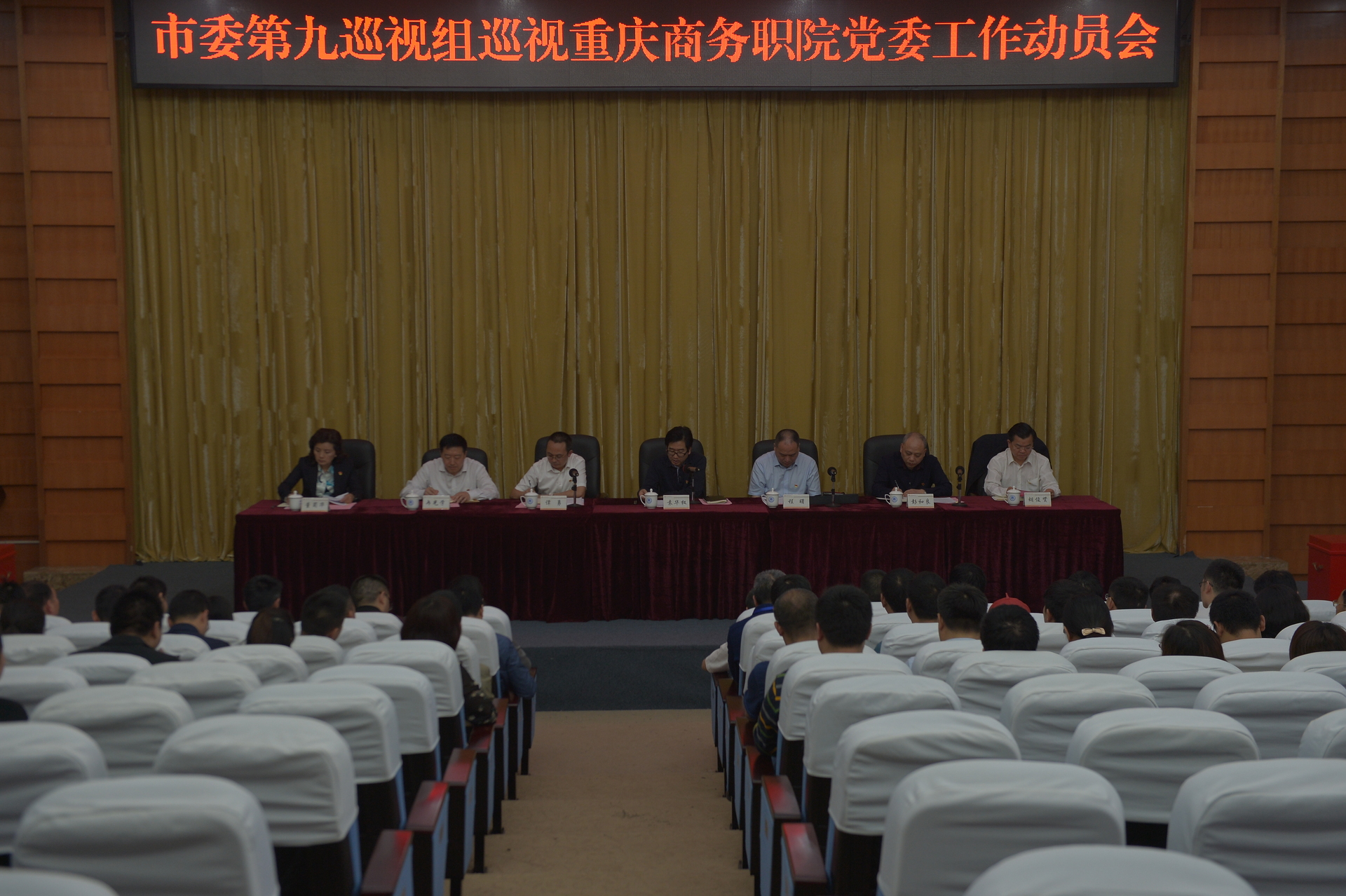 市委第九巡视组全体成员,重庆商务职院党委领导班子成员出席会议;学校副处级以上干部、部分离退休干部及教职工和学生代表列席会议。