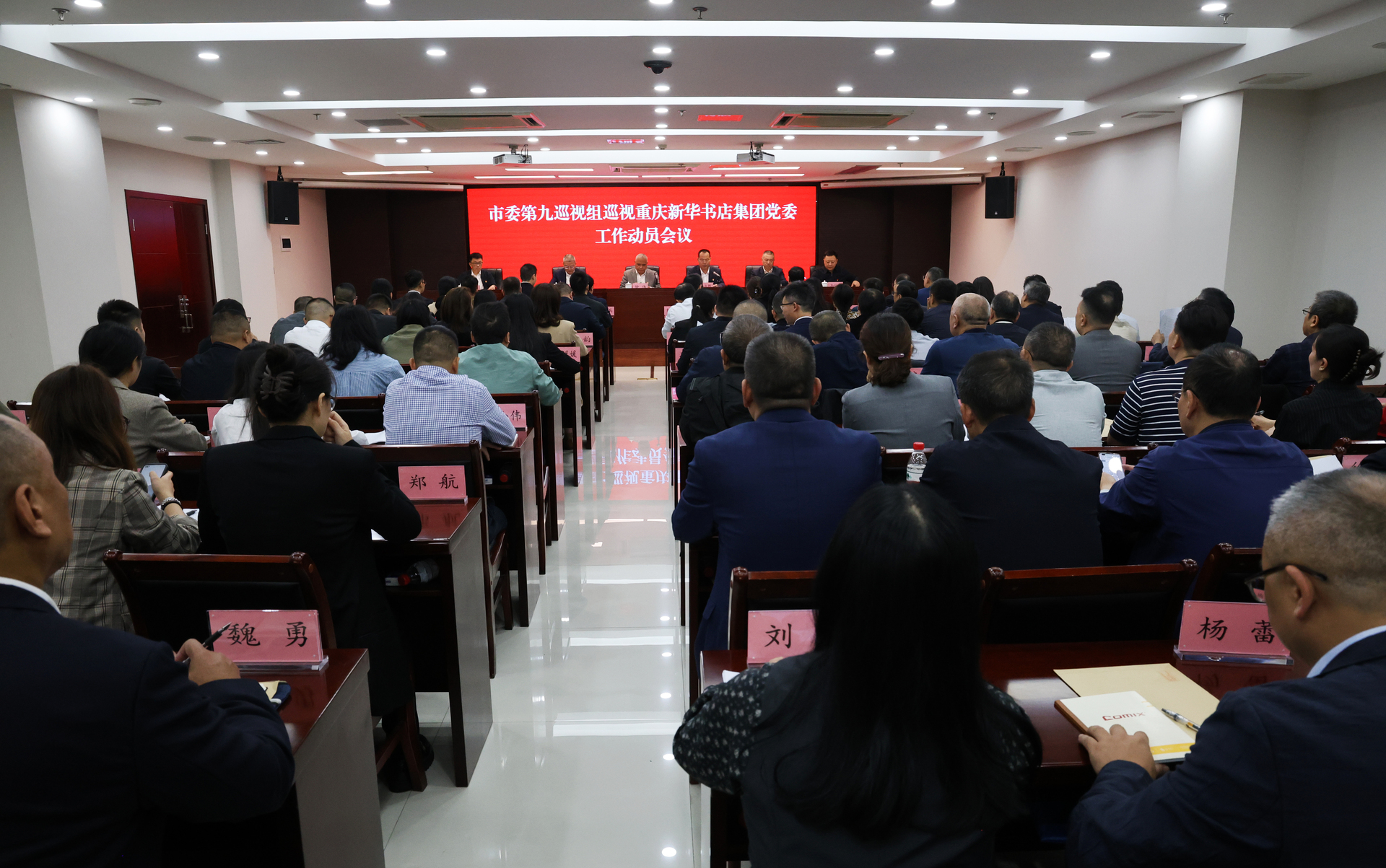 市委第九巡视组副组长及有关成员、市委巡视办有关处室负责人,重庆新华书店集团党委领导班子成员出席会议;集团其他在职市管干部,纪检机构负责人,内设部门负责人,下属子公司和分公司负责人,部分职工代表、近三年离退休职工代表列席会议。各区县新华书店领导班子成员以视频会议方式列席。