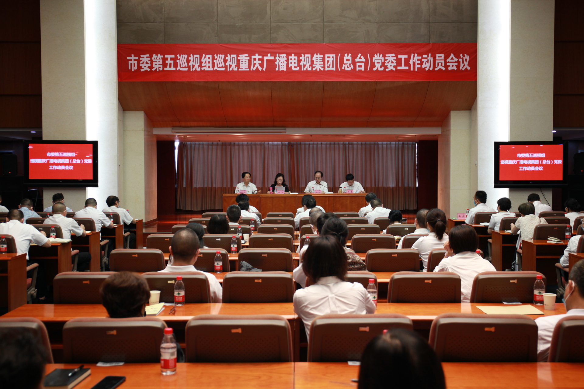 根据市委巡视工作领导小组的部署,2022年7月28日,市委第五巡视组巡视重庆广电集团(总台)党委工作动员会召开。会前,市委第五巡视组组长朱红主持召开与重庆广播电视集团(总台)党委书记、总裁(总台长)牟丰京的见面沟通会,传达了市委书记陈敏尔在市委常委会会议审议市委巡视工作规划等制度文件时的讲话精神。动员会上,朱红就即将开展的巡视工作作讲话,通报了巡视任务,并就配合做好巡视工作提出要求;牟丰京主持会议并作表态讲话。