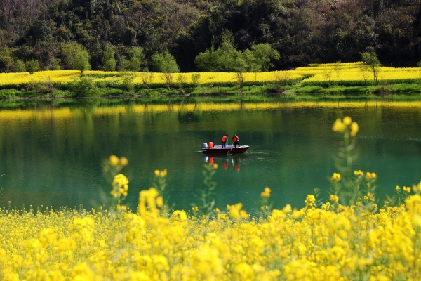 重庆市黔江区建立区、乡镇(街道)、村(社区)三级河库长体系,实现全区河库长全覆盖,对辖区所有河道、水库的环境卫生、植被保护、水资源保护等进行巡查,打造最美河道、最美水库。图为重庆市黔江区舟白街道舟白社区河长和保洁员驾驶电动船在阿蓬江上巡河和清理漂浮物。(重庆市黔江区纪委监委供 杨敏 摄)