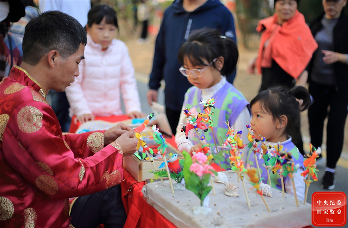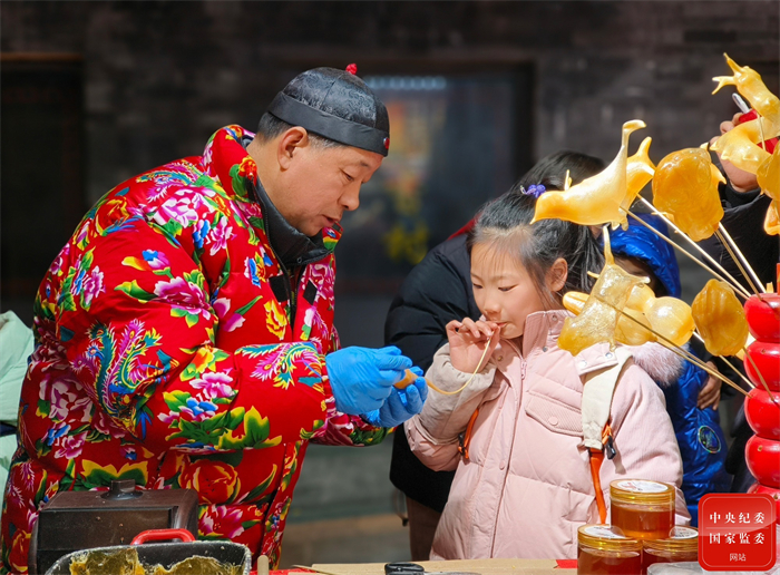 在吹糖人摊点上,各式各样的糖人不仅唤起了大人们的童年记忆,也吸引了小朋友驻足流连。在手艺人的指导下,小朋友亲身体验糖人制作过程,在感受非遗文化魅力的同时,品味着甜甜的年味儿。(安徽省宣城市广德市纪委监委供 喻从芳 摄)
