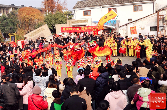 锣鼓喧天鞭炮闹,龙腾狮跃祝福到。在浙江省兰溪市游埠老街上,舞龙舞狮活动引得市民和游客接连叫好,为一年一度的新春佳节增添了浓郁的喜庆氛围。(浙江省兰溪市纪委监委供 邵伟荣 摄)
