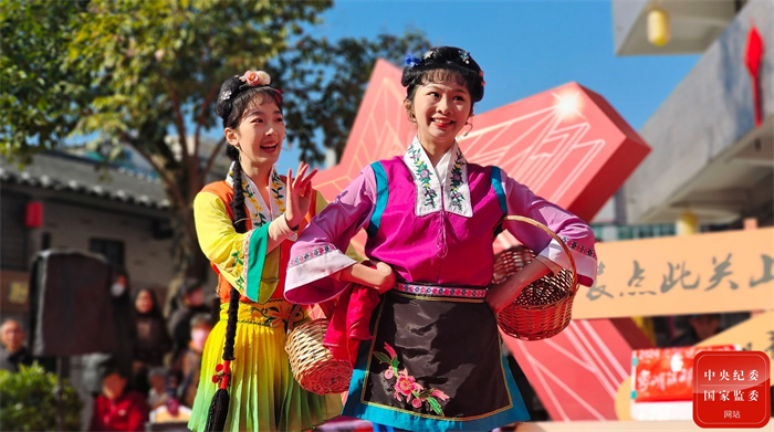 过大年,看大戏。在江西省瑞金市象湖里街区,赣南采茶戏演员们用精彩纷呈的戏曲盛宴送上新春祝福,让市民们走近非遗、了解非遗,欣赏传统文化之美,感受最淳朴的中国年味。(江西省瑞金市纪委监委供 曾煜星 摄 )