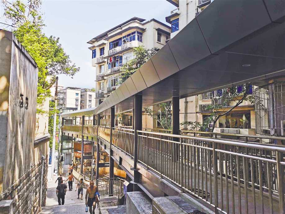 北碚区天生街道月亮田片区老旧小区加装了公共电梯,并修建连廊让电梯与堡坎相连接,方便了该区域老年人和残疾人出行。(受访者供图) |
