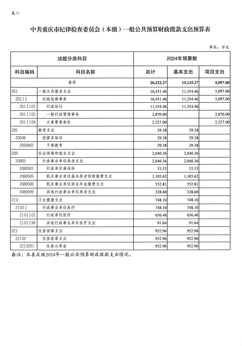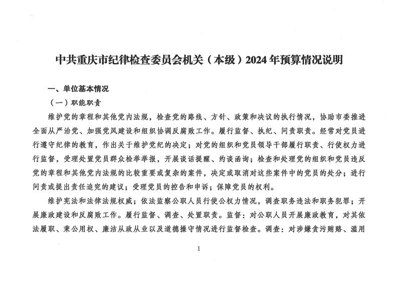中共重庆市纪律检查委员会机关(本级)2024年预算情况说明