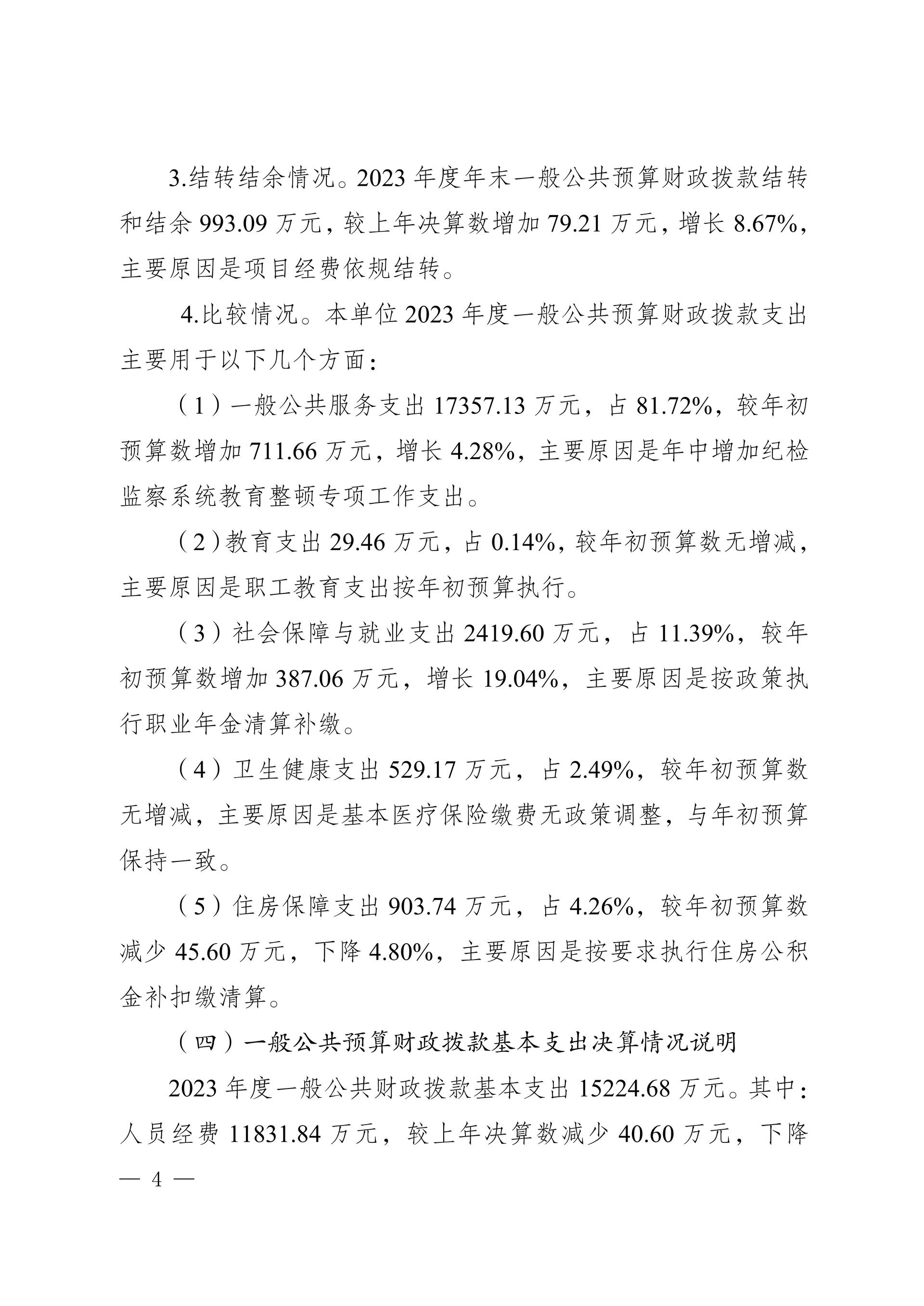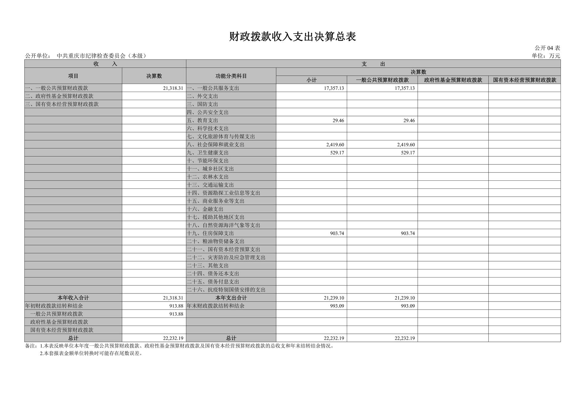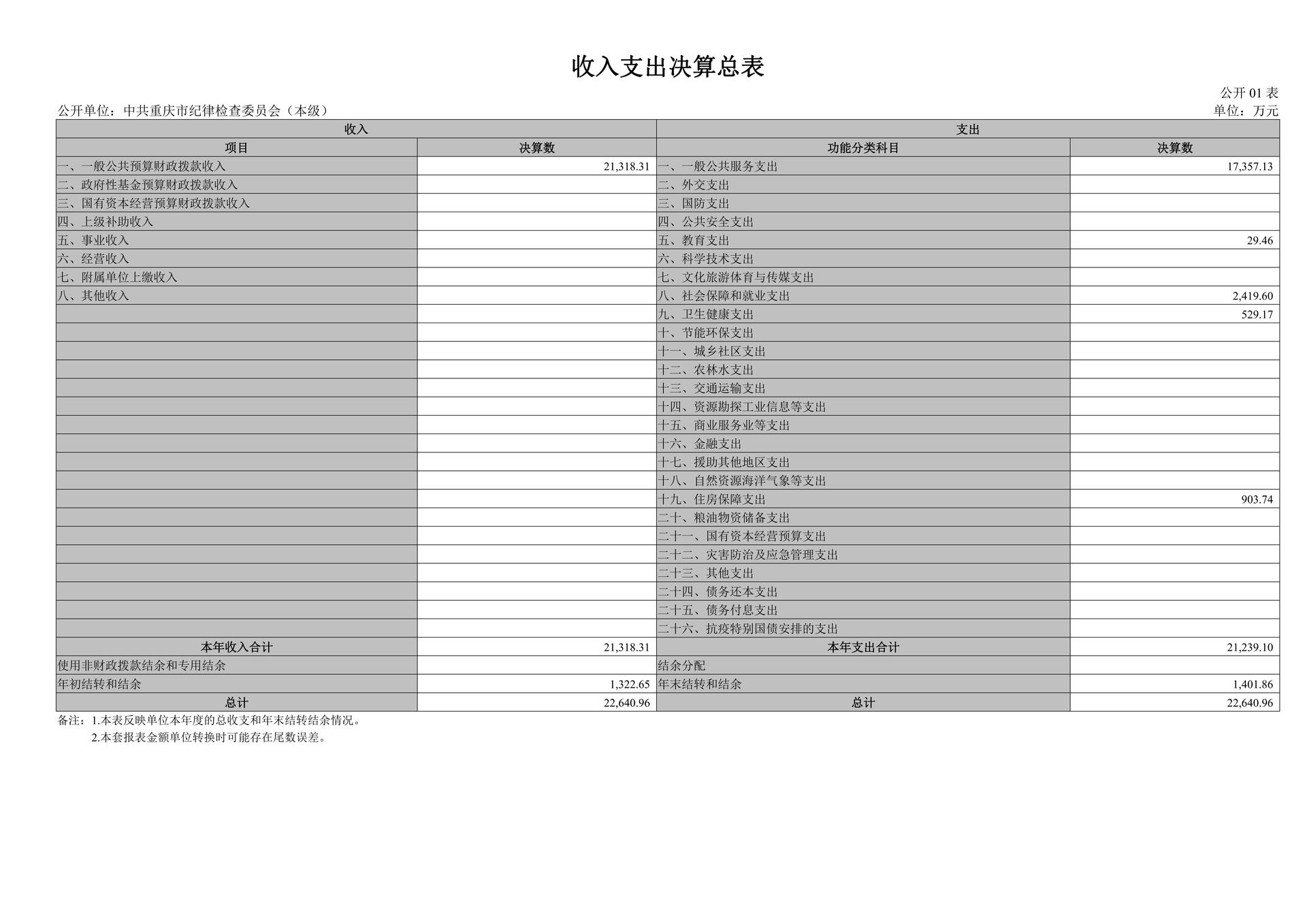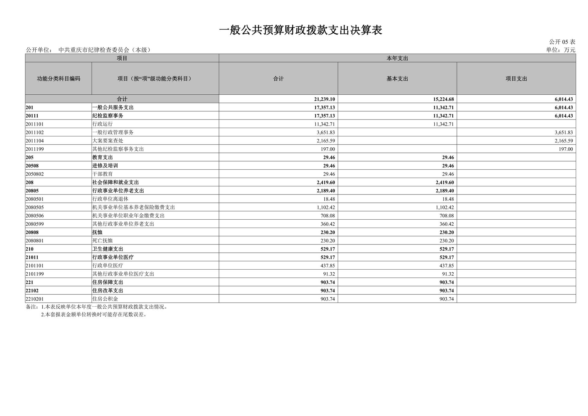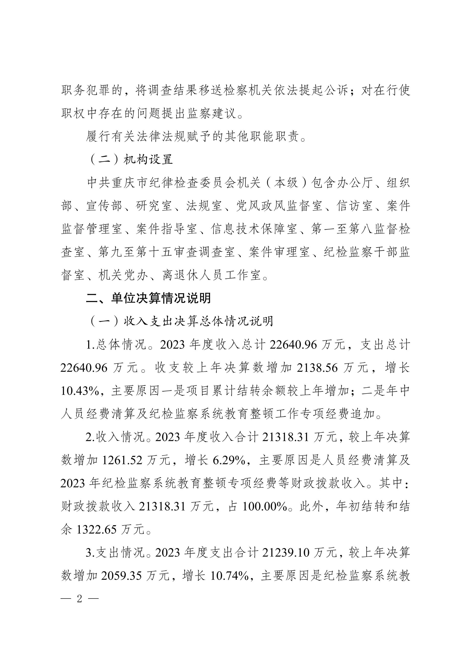 中共重庆市纪律检查委员会(本级)2023年度决算公开说明及公开报表